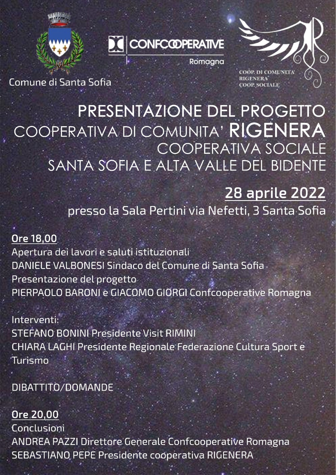 Appuntamenti Presentazione del progetto Cooperativa di Comunità RIGENERA L'incontro si terrà il 28 aprile 2022 alle ore 18 presso la sala "Pertini" in via... venerdì 22 aprile 2022 0